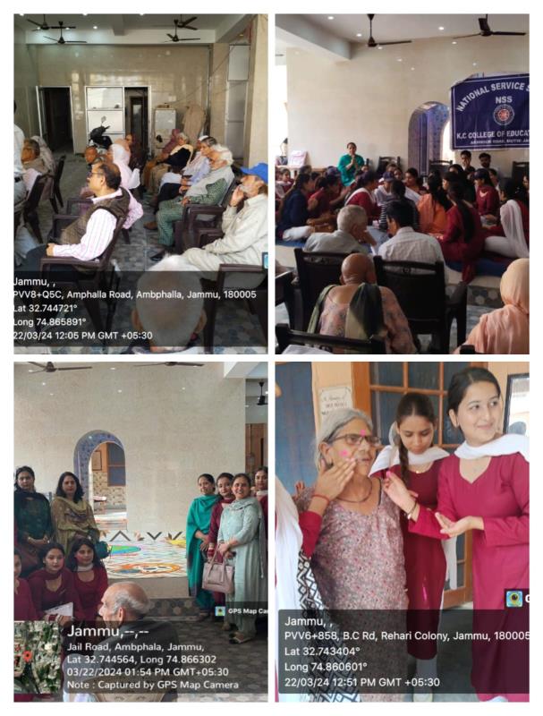 K.C. College of Education celebrated Holi at Old age Home, Amphalla, Jammu